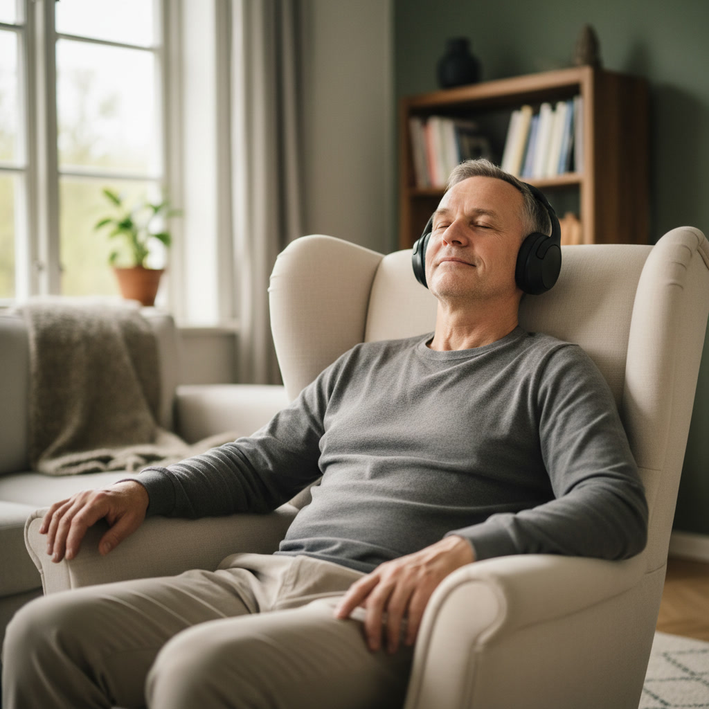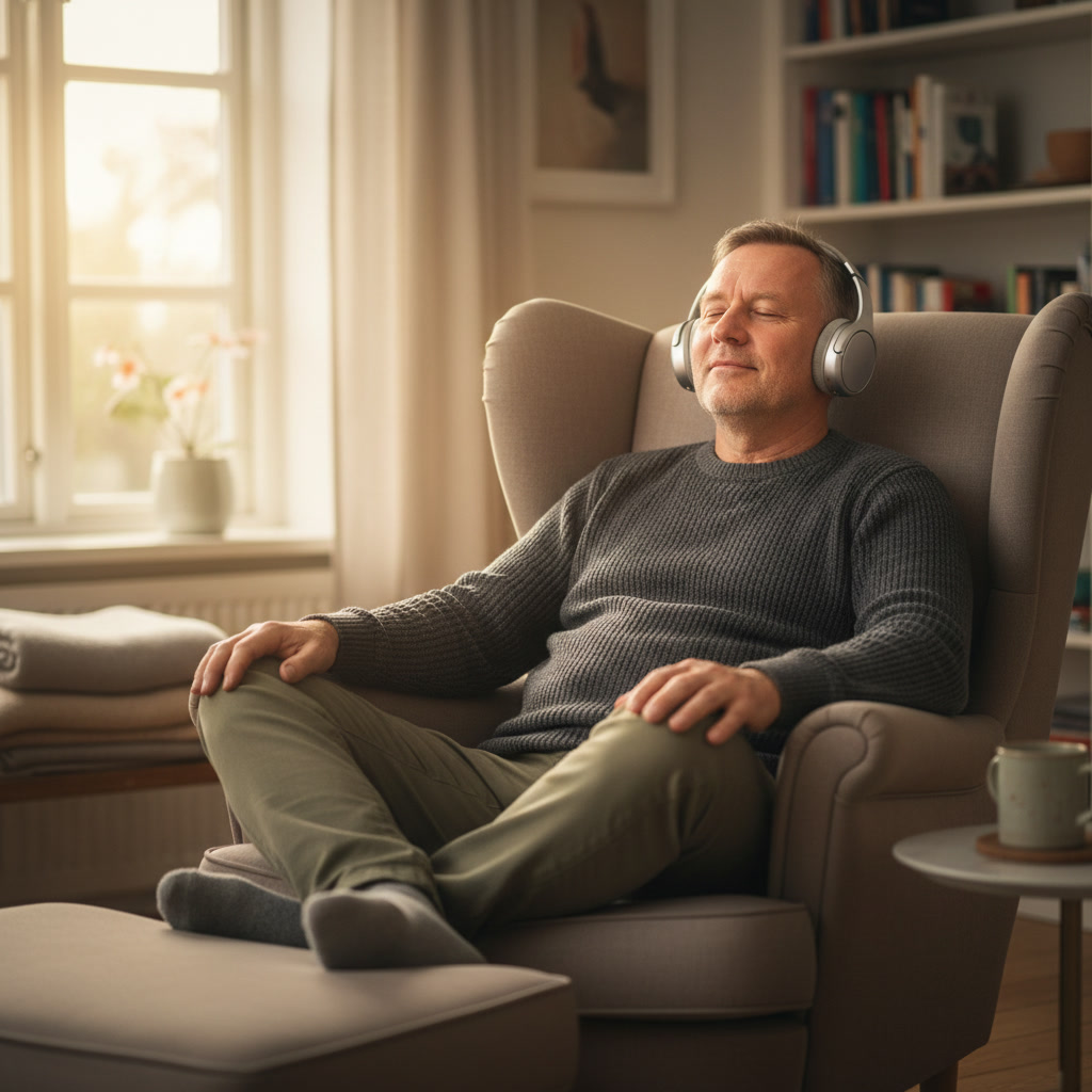 Sæt dig behageligt i en stol eller sofa, luk øjnene og lyt.
